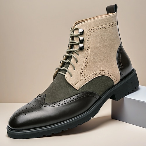 scarponi da trekking da uomo in similpelle color cuoio e verde oliva con suola resistente, ideali per avventure all'aria aperta, escursioni e gite informali