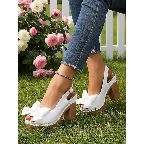 Per donna Casuale Quotidiano San Valentino Fiocco Plateau Tacco grosso Peep Toe Casual Finta Pelle Vernice Fibbia Tessuto almond Nero Bianco