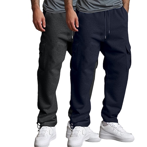 Per uomo Pantaloni da Tuta Cargo Pantaloni in Pile Joggers Pantaloni Pantaloni della tuta a gamba dritta Coulisse Elastico in vita Multi-tasche Tinta unica Caldo Traspirante Lunghezza intera Casuale