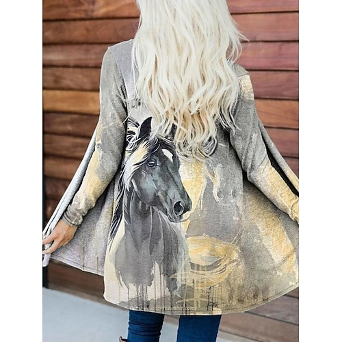 Per donna Giacca Casual Caldo Confortevole Orlo irregolare Aperturaanteriore Elegante Vintage Moda Moderno Animale Streetwear Casuale Athleisure Quotidiano Lungo Senza colletto Vestibilità comoda