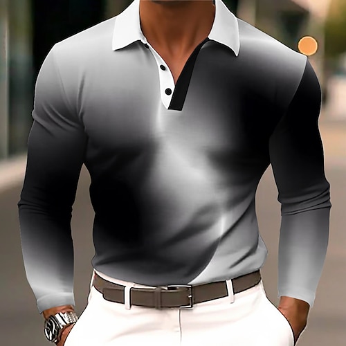 Per uomo Sfumatura Geometrico Polo Manica Lunga Magliette polo Bavero Business Casual Athleisure Abbigliamento quotidiano Stampa 3D Bottoni Primavera Autunno Inverno Blu Viola Marrone