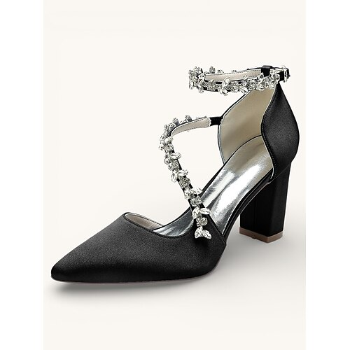 décolleté da sposa in raso da donna con cinturino alla caviglia in strass – scarpe da sposa e da damigella con punta a punta e tacco basso in vari colori