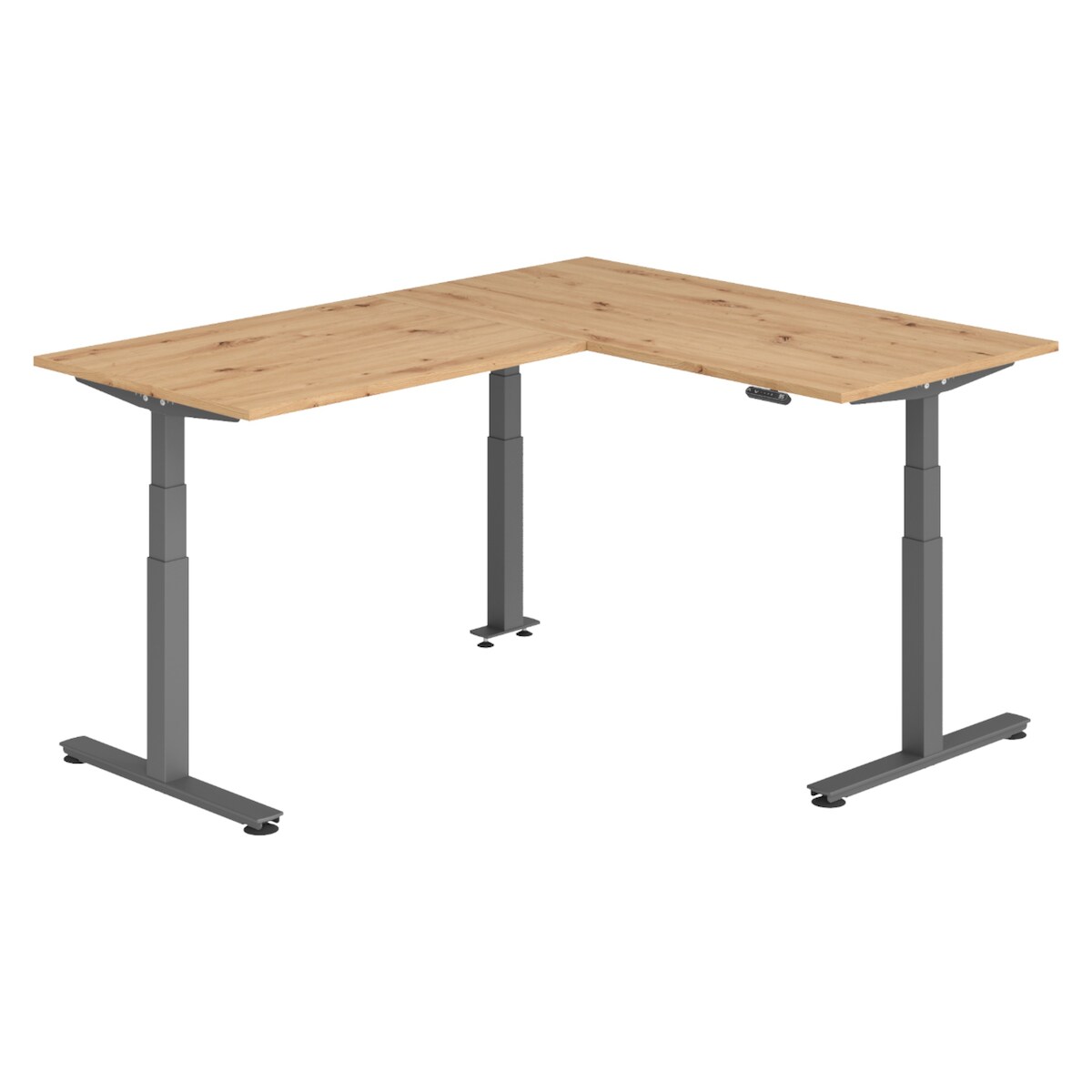 bümö Eckschreibtisch elektrisch höhenverstellbar L-Form: 160 x 200 cm in Asteiche, Gestell graphit - Stehschreibtisch mit Memory-Steuerung,