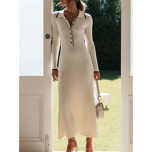 Per donna Abito maxi Tubino Vacanza Casual Ospite di nozze Quotidiano Ferie Taglia piccola Semplice Manica Lunga Bavero Bianco