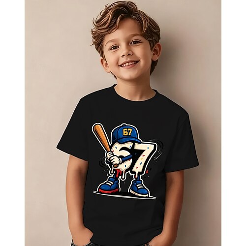 Unisex Ragazze 3D Grafico Gergo divertente 67 Maglietta Manica Corta Stampa 3D Estate Primavera Sport Moda Streetwear Bambini 4-12 Anni Girocollo All'aperto Casuale Quotidiano Vestibilità regolare