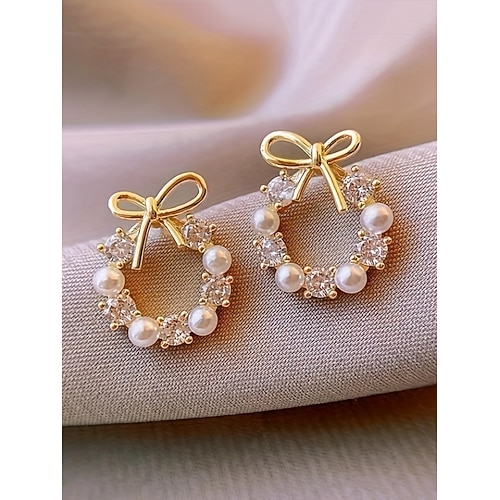 orecchini a fiocco di perle da donna: eleganti orecchini a forma di corona con dettagli in cristallo, gioielli alla moda per donne e regalo di Natale