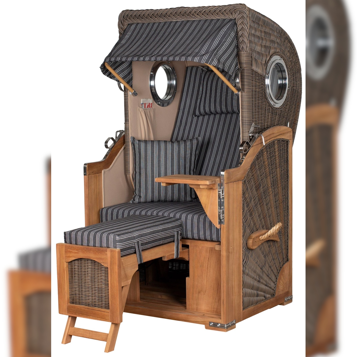 Mr. Deko Strandkorb Komplettset - bene living - Ammersee Grande XXL Teak - PE grau - Modell 500 - inkl. Liftersystem