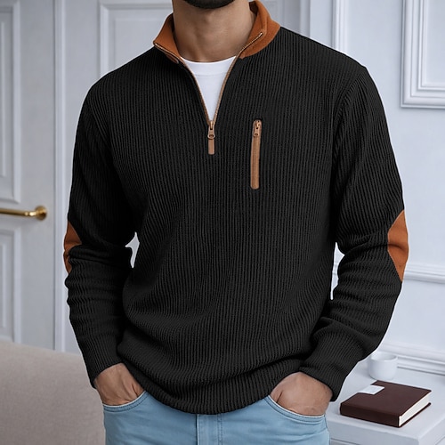Da uomo Camicia di Velluto a Coste Maglietta Camicia a Maniche Lunghe Manica Lunga Con cerniera Autunno Inverno Autunno Inverno Blocco di colori Quotidiano Testurizzato Casual Con zip Oversize Ampio