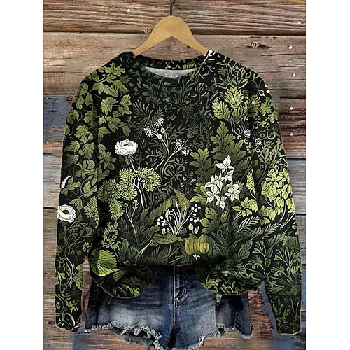 Per donna Felpe Floreale Grafico Vintage Casual Manica Lunga Girocollo Top Regolari Streetwear Abbigliamento Quotidiano Casuale Stampato Verde scuro Primavera Autunno Inverno