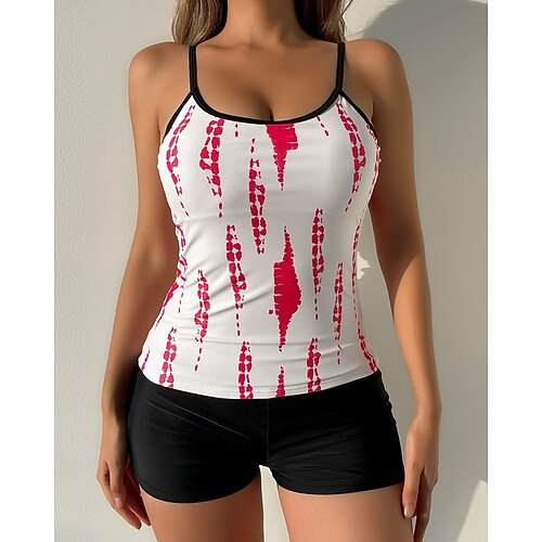 Per donna Set Tankini Costume da bagno Costume da Bagno Costumi da bagno Nero Bianco Protezione UV Senza Maniche - Surf Spiaggia Nuoto Estate