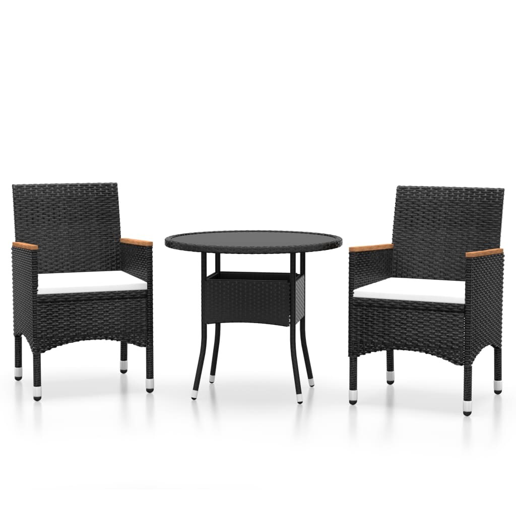 vidaXL 3-tlg. Garten-Essgruppe Poly Rattan Schwarz
