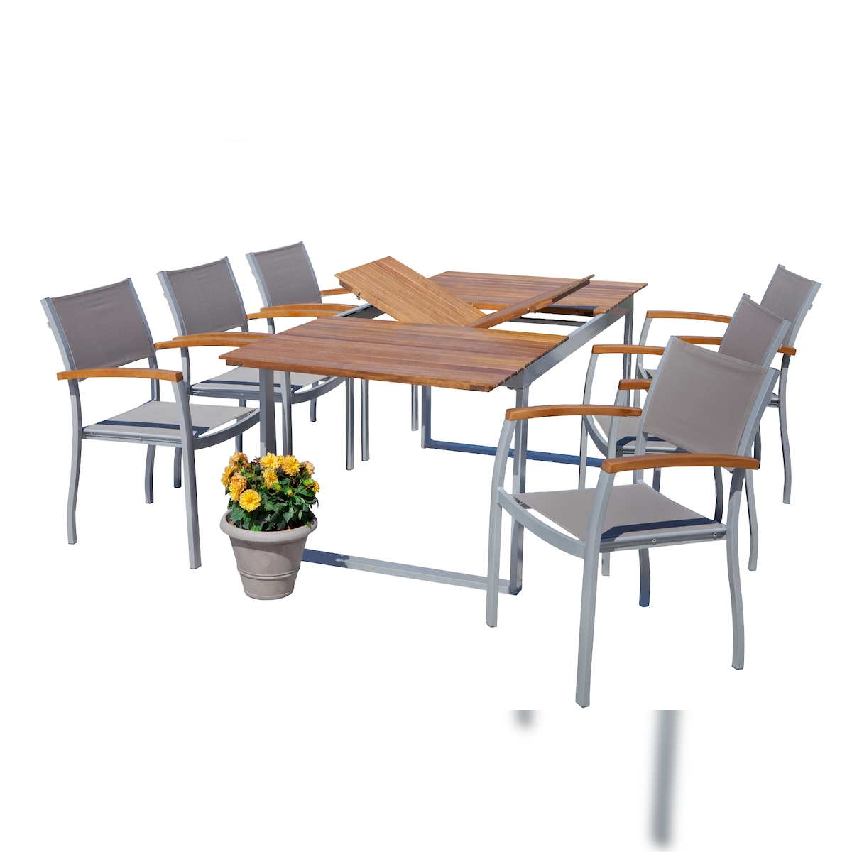 Merxx Naxos Set 7tlg.. Ausziehtisch 150 (200)x90. Stapelsessel