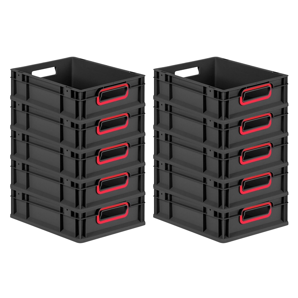 PROREGAL SparSet 10x Eurobox NextGen Color, HxBxT 12x30x40cm, 11 Liter, Griffe rot offen, Schwarz, Eurobehälter, Transportbehälter