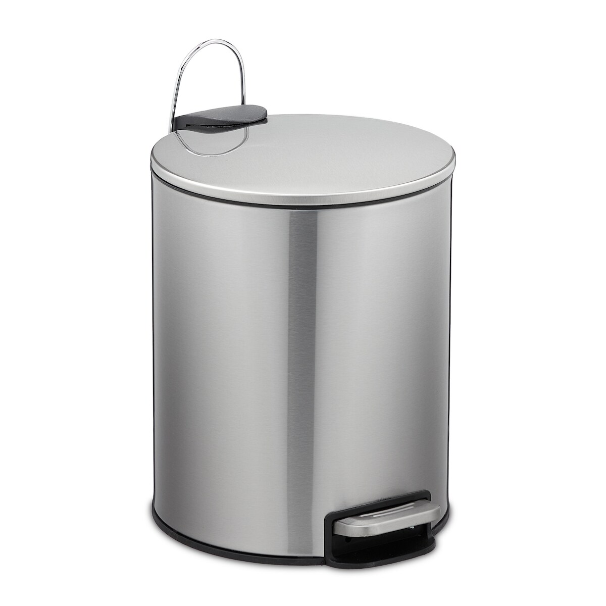 Relaxdays Kosmetikeimer 5 Liter, Edelstahl, Badabfallbehälter mit Inneneimer, Absenkautomatik, runder Treteimer, silber