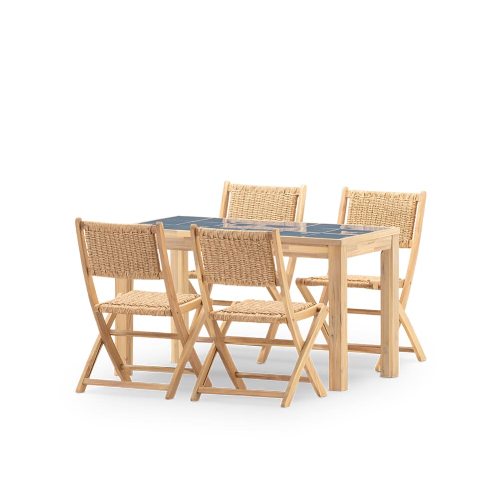 Set da pranzo 4 posti tavolo ceramica blu 125x65
