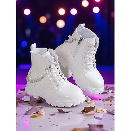 stivali da combattimento per ragazze ispirati a pop star coreane con suola spessa, design allacciato e dettaglio con catena di perle per abiti alla moda e abbigliamento casual