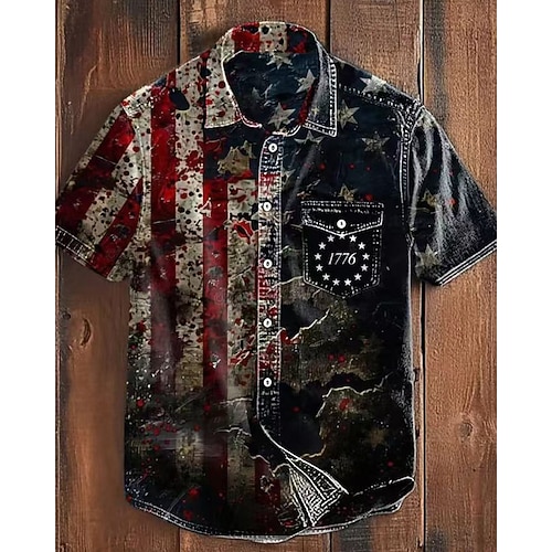 Per uomo Bandiera Nazionale Camicia Camicia Estiva Camicia casual Maniche Corte Hawaiano Resort Vacanza Abbigliamento quotidiano Uscire Estate Bavero Stampato Nero Rosso