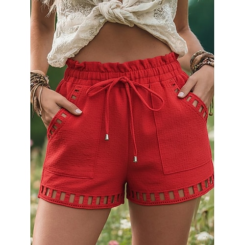Per donna Pantaloncini ispirati al lino Vacanza Essenziale Corto Misura del girovita medio Comodità Elasticizzato Nero Bianco Rosso Verde Estate Primavera
