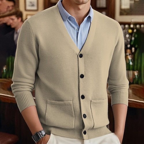 Per uomo Maglioni di Natale Gilet Cardigan Lavorato a maglia corto Maglia Top Regolari Tasca Tinta unica Scollo a V Elegante Vintage Casa Lavoro Abbigliamento Primavera Autunno Nero Blu M L XL