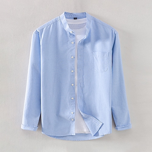 Per uomo Camicia Oxford Bianco Blu marino Blu Arancione Grigio chiaro Manica Lunga Colletto Mao Scuola Matrimonio Bottoni Abbigliamento Neutro Moda Quotidiano
