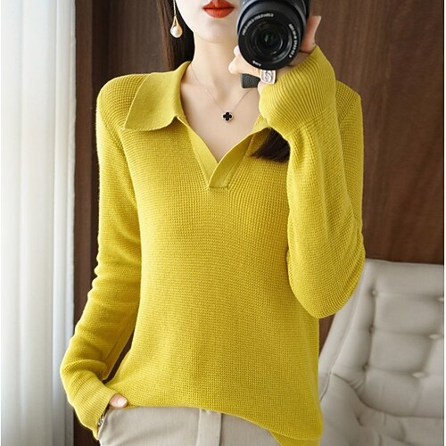 Per donna Felpa Elegante Quotidiano Colletto Polo Lavorato a maglia Manica Lunga Top Regolari Maglia Quotidiano Weekend Nero Bianco Primavera Autunno