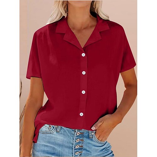 Per donna Blusa Tinta unica Quotidiano Elegante Essenziale Manica Corta Colletto a Camicia Top Regolari Quotidiano Bottoni Rosa Rosso Grigio chiaro Estate Primavera