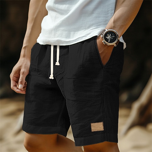 Per uomo Shorts Shorts di Lino Pantaloncini Estivi Shorts da Spiaggia Elastico in vita Coulisse Semplice Comodità Traspirante Lunghezza al ginocchio All'aperto Quotidiano Spiaggia Vacanza Moda Nero