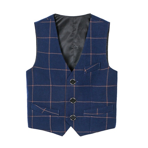 Bambini Ragazzi Gilet Capispalla Plaid Senza Maniche Tasca Scollo a V Bottoni Cappotto All'aperto Moda Cool Quotidiano Blu Nero Blu marino Primavera Autunno 4-12 Anni