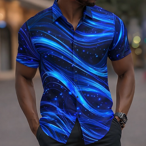 Per uomo Sfumatura Onde Bagliore al neon Camicia Camicia con Bottoni Camicia casual Manica Corta Moda Casual Quotidiano Vacanza Estate Primavera Collo ripiegato Stampa 3D camicie con colletto Blu