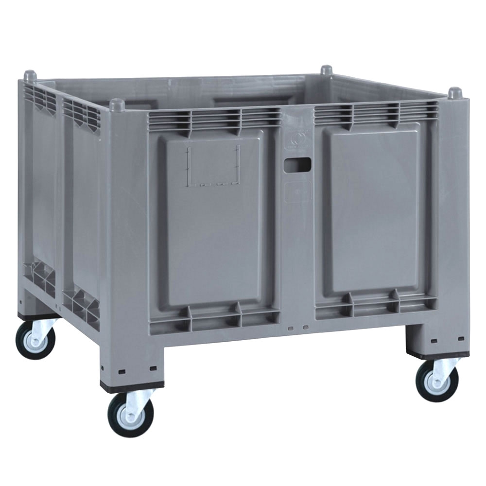 BRB Palettenbox mit 4 Lenkrollen, LxBxH 1200 x 800 x 1000 mm, Boden und Wände geschlossen, grau