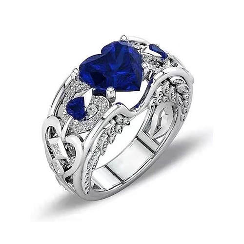 anello da donna con pietra preziosa a forma di cuore rosso e fascia placcata in argento: elegante gioiello per regalo di Natale e occasioni festive