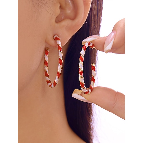 orecchini a cerchio natalizi da donna, design intrecciato rosso e verde, materiale in lega, perfetti per feste e regali