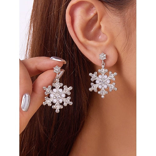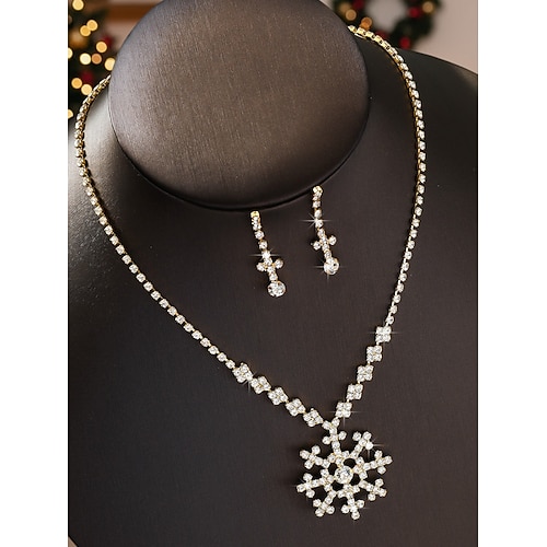 set di gioielli da donna con cristalli a forma di fiocco di neve, collana e orecchini con strass scintillanti in tonalità oro, elegante accessorio invernale per feste di Natale, matrimoni regali