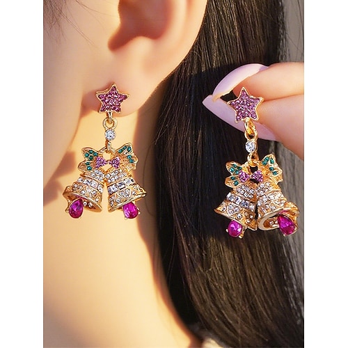 orecchini da donna a forma di albero di Natale: materiale in lega, strass colorati e dettagli in perle, gioielli festivi per le feste, perfetti per le feste di Natale e come regalo stagionale