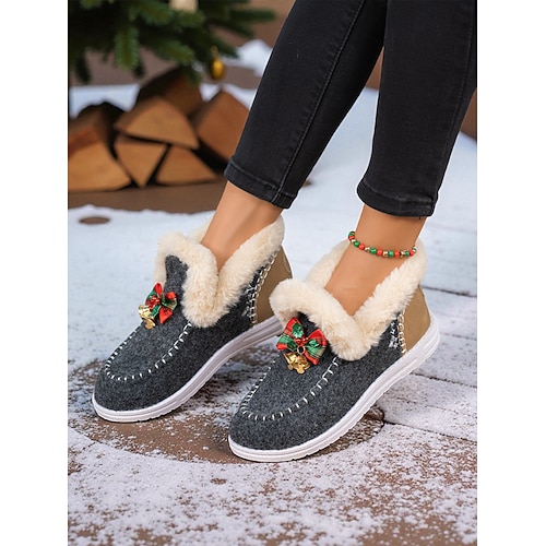 scarpe da donna in pelliccia di peluche calda per l'inverno e per il Natale - grazioso fiocco e dettaglio a campanella, ideali per il comfort in casa, per lo scambio di regali la mattina delle feste e per l'abbigliamento invernale
