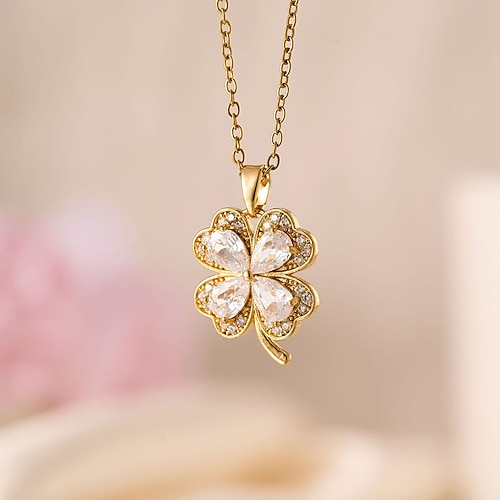 1 pezzo Collana con pendente Collana For Per donna Zircone cubico Quotidiano Streetwear Regalo Acciaio al titanio Patchwork Floreale Giorno di San Patrizio
