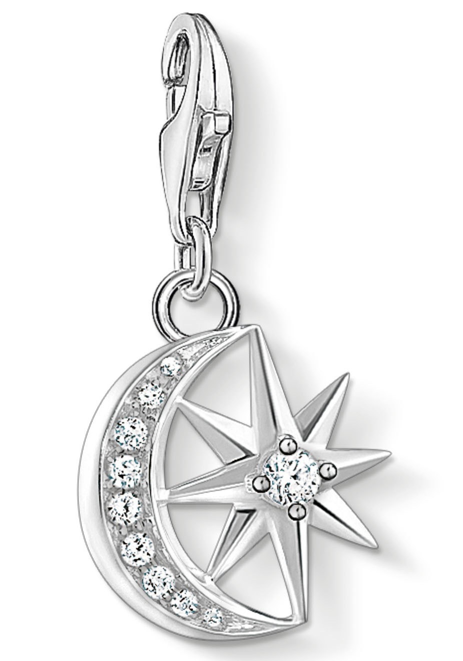 Charm-Einhänger THOMAS SABO "Stern & Mond, 1794-051-14", bunt (silberfarben, weiß, weiß), Charms, Damen, Silber 925 (Sterlingsilber), mit Zirkonia (synth.)