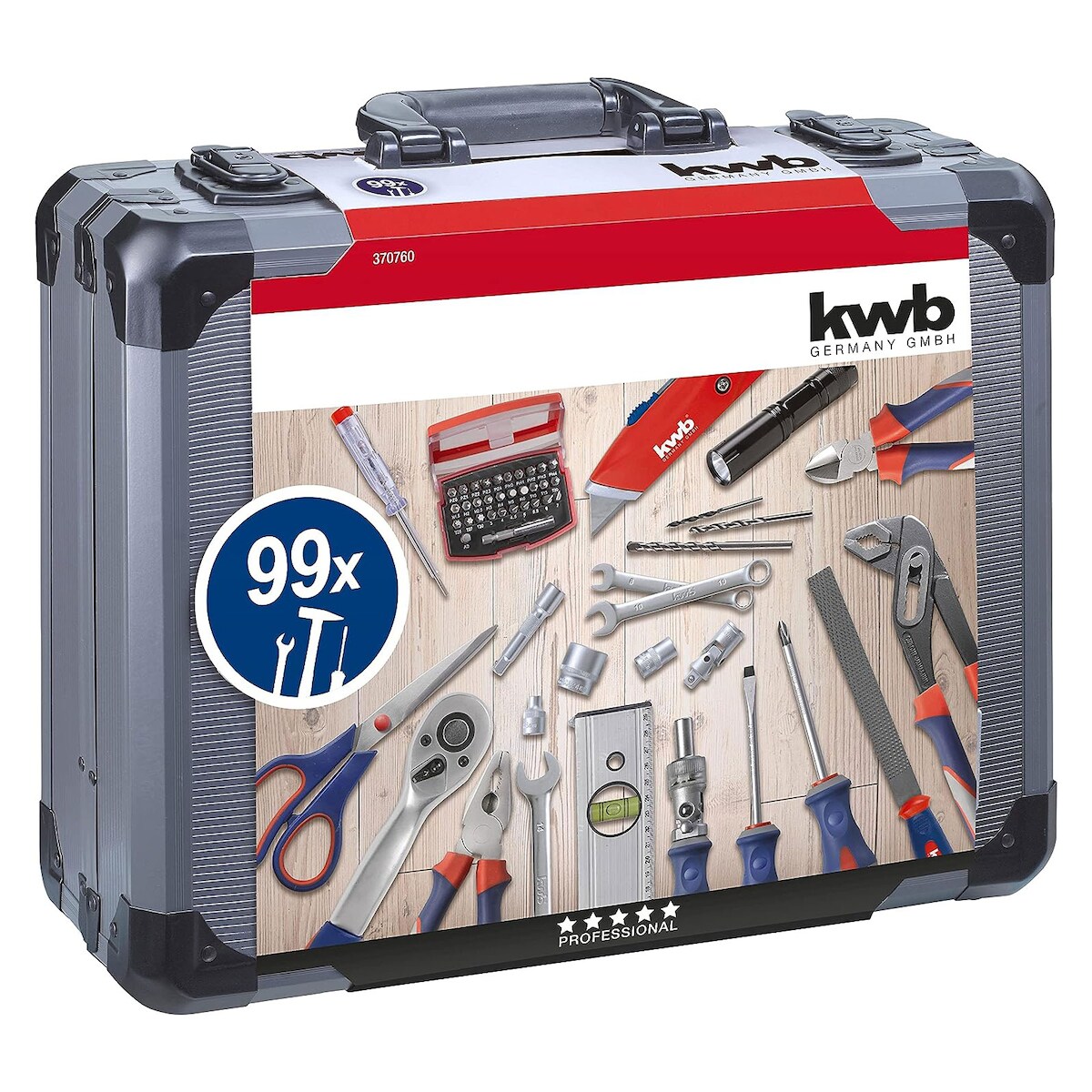 kwb Werkzeug Koffer inkl. 99-tlg. hochwertigem Werkzeug-Set, gefüllt, robust und hochwertig