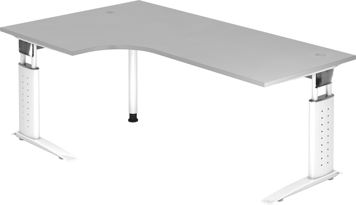 Hammerbacher Winkeltisch C-Fuß 200x120cm 90 Grad Grau/Weiß