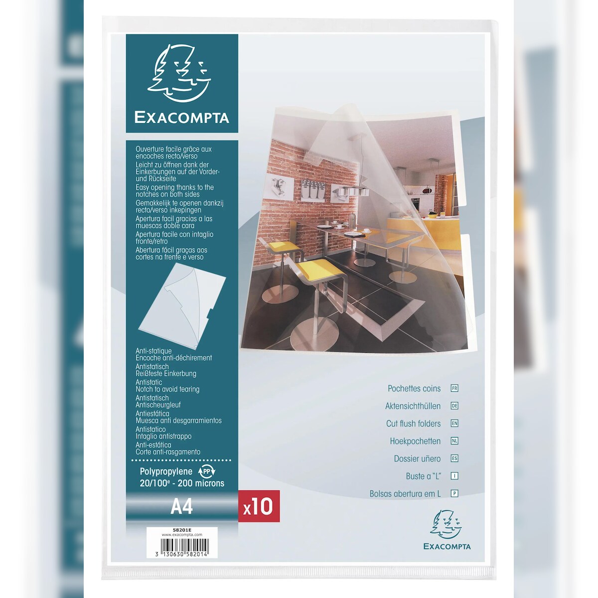 Exacompta 58201E 10x Packung mit 10 Aktensichthüllen aus festem PP 200µ, mit Einkerbung, für Format DIN A4 - Kristall