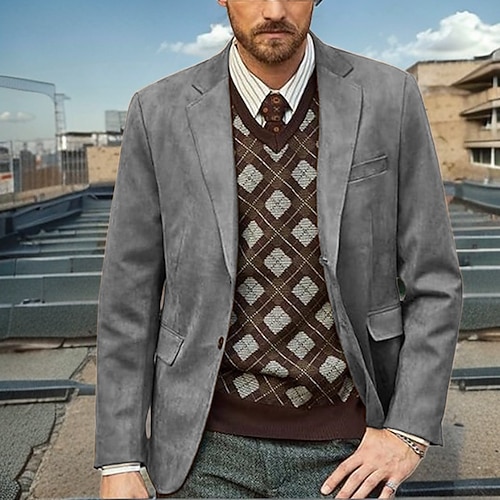 Per uomo Giacca in Velluto a Coste Colletto ad incastro Vintage Classico All'aperto A righe Blazer Nero Borgogna Grigio Vestibilità su misura Monopetto Due Bottoni