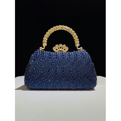 borsa da sera glitterata da donna – vari colori, impreziosita da dettagli floreali in cristallo, accenti dorati metallizzati, include catena per il trasporto a spalla, perfetta per matrimoni, gala ed eventi formali