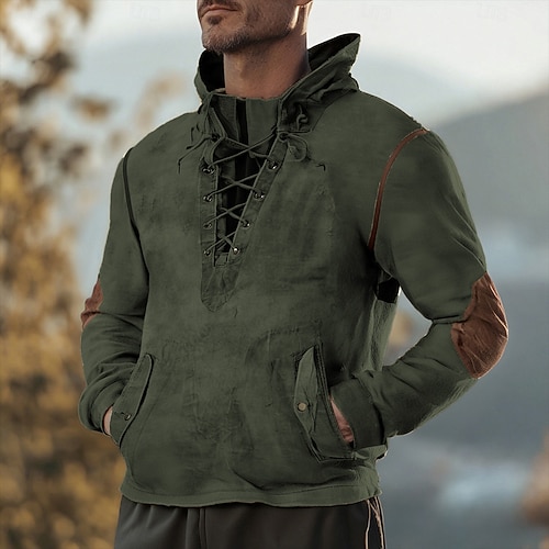 Per uomo Felpa con cappuccio Nero Verde militare Blu marino Cachi Con Cappuccio Blocco di colori Allacciato Tasca Sport Outdoor Quotidiano Ferie Poliestere Streetwear Essenziale Casual Primavera