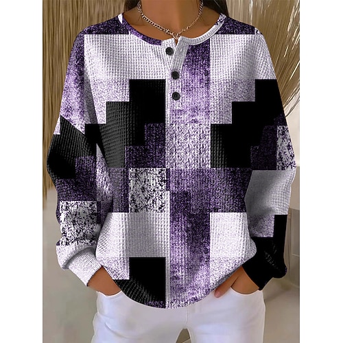 Per donna Felpe con cappuccio Grafico Geometrico Blocco di colori Moda Casual Stampa Manica Lunga Girocollo Top Regolari Casuale Streetwear Bottoni Blu Rosso Viola Verde Grigio Autunno Inverno
