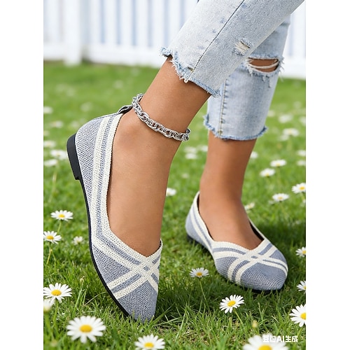 ballerine verdi da donna in Flyknit con punta affilata e motivo a croce alla moda, scarpe festive per il giorno di San Patrizio, da indossare casual, per le feste, le sfilate e le gite primaverili