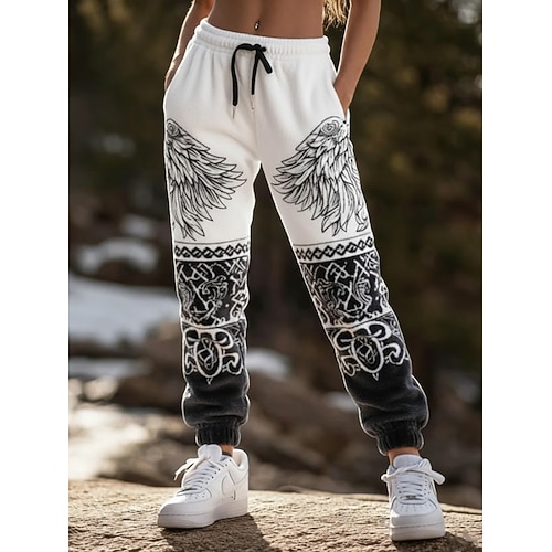 Per donna Vichingo Aderente Joggers Vacanza Vintage Moda Lunghezza intera Vita Alta Animale Albero Coulisse Patchwork Fascia Elastica Comodità Alta elasticità All'aperto Vacanza Formale Grigio scuro