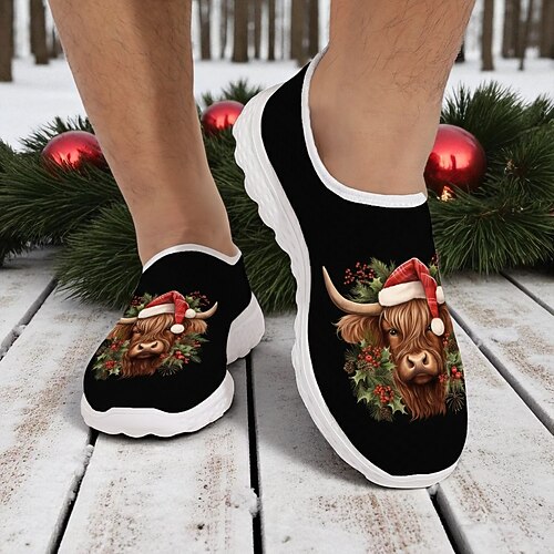 scarpe da ginnastica da uomo con renne natalizie: grazioso design a cartoni animati, vestibilità comoda, perfette per il divertimento delle feste e per l'abbigliamento casual
