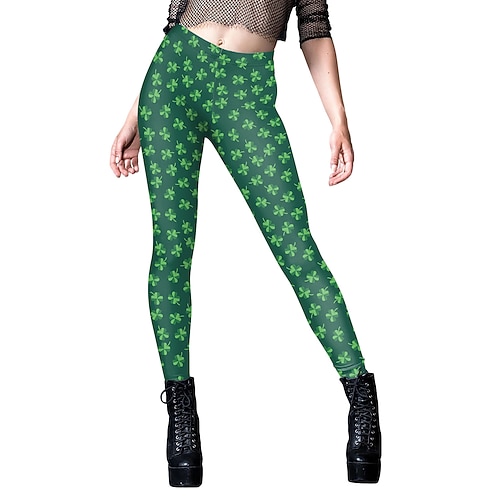 San Patrizio 2026 Trifoglio Irlandese fortunato Carnevale Pantaloni Leggings Cosplay Adulti Per donna Giorno di San Patrizio Casuale Feste Costume di Carnevale facile Vestirsi