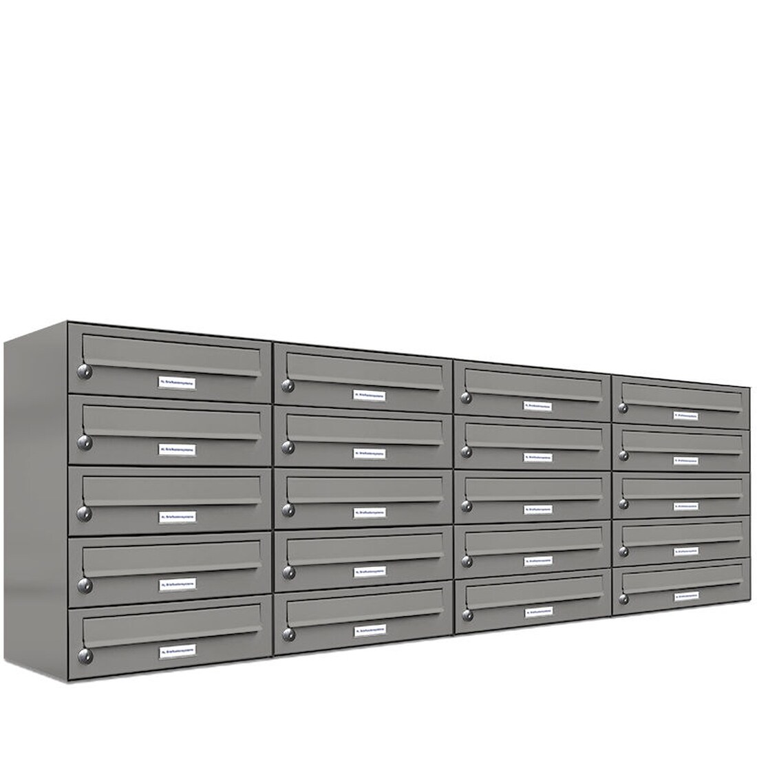 AL Briefkastensysteme 20 Fächer Premium Wand Briefkasten Anlage in RAL 9007 Aluminium Grau, Post A4, robust, wetterfest, Artikelnummer: 132P20EA4