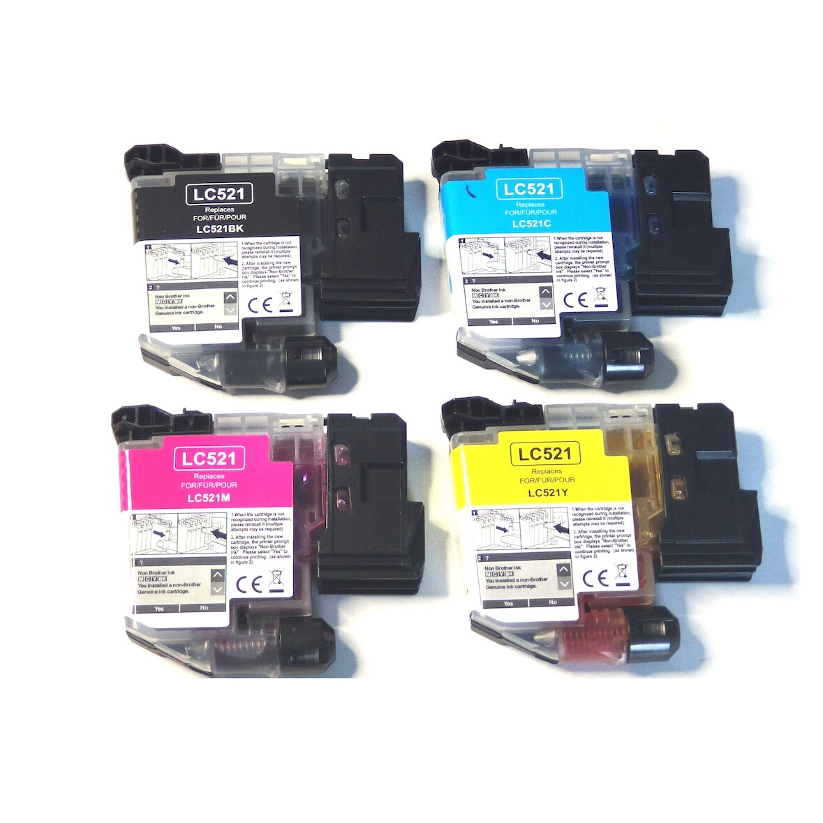 4x Tintenpatronen kompatibel f. Brother DCP-J 1310DW - ersetzt Brother LC-521 Bk / C / M / Y